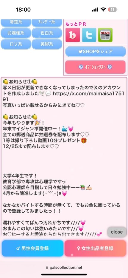 10代〜30代前半の女性が中心。サイト名の通り若い女性が多い。